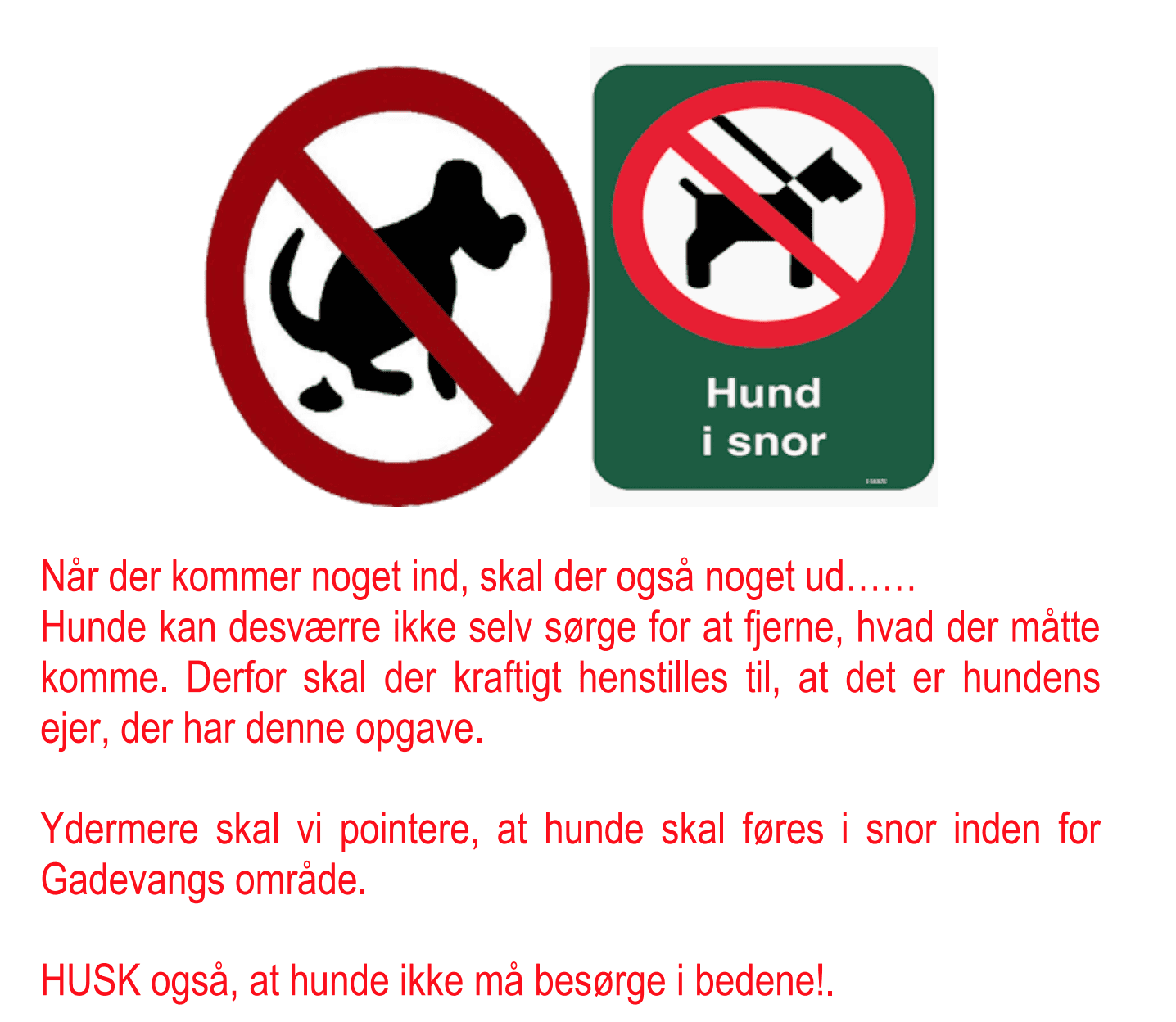 Beboerne er forpligtet til at fjerne efterladenskaber fra deres husdyr ved bl.a. at benytte de opsatte hundeposer eller hundetoiletterne langs Høje Taastrup stien.